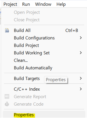 - 상단 project > properties